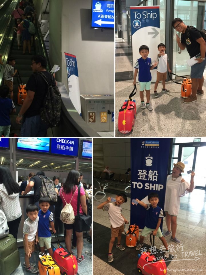 上船地點喺郵輪碼頭,一落的士已有工作人員Check-in大型行李,行李就會直接被送到船上我地間房門口,呢個安排真係非常好!!!!!因為如果要拖住個大喼行上行落,去辦登船手續然後再去登船都幾麻煩。
