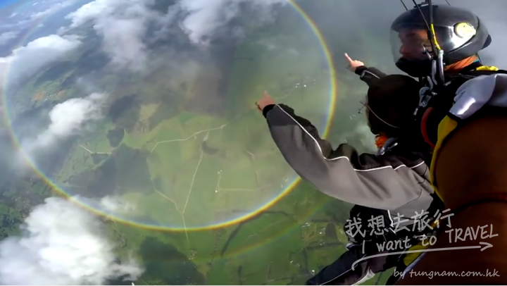 一名旅行玩家在新西蘭跳傘, 竟然見到此情景. 真喺一世難忘!