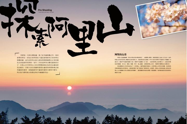數碼雙週-遊走阿里山 ctphotography 2014-06-06 TAIWAN 台灣, Travel Photography 旅遊攝影 Carl Tsang Carl為CT。Photography創作總監與主攝影師,同時為香港專業攝影師聯網 (HKPPN), WPPI, 與WPPA成員。筆者曾於多個本地或外地攝影比賽中得獎。2011年5月曾獲馬來西亞領事館邀請成為《馬來西亞美食廚房攝影大賽》與2013年10月被香港防止虐待長者協會邀請成為《關愛》攝影大賽攝影評審之一。除此之外筆者更為曾為多本本地相機雜誌(相機世界與數碼雙週)專欄定期撰寫文章。目前主要提供商業人像,時裝,產品(靜物及食物),建築物與本地或海外婚禮婚紗攝影。 今期數碼雙週有我撰寫的遊走阿里山。 Taipei Package 台北套票 Tai Chung Package 台中套票 Kao Hsiung Package 高雄套票 Ken Ting Package 墾丁套票 留言區 則留言 Taiwan, 台灣, 攝影, 攝影師, 數碼雙週, 櫻花, 阿里山 下一篇 » «上一篇