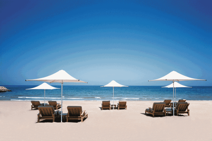 8)阿曼 – 蔚藍的天空、阿曼海的碧藍海水與雄壯的山脈形成鮮明對比,共同烘托出香格里拉Barr Al Jissah度假酒店的華美風格。度假酒店由三座獨立的酒店組成 – Al Waha酒店、 Al Bandar酒店以及 Al Husn 酒店,每座酒店掩映在椰棗樹林中,建築設計采用了阿拉伯傳統的Dhofari風格,酒店內還設有游泳池等休閑設施,為客人們打造悠享天地。