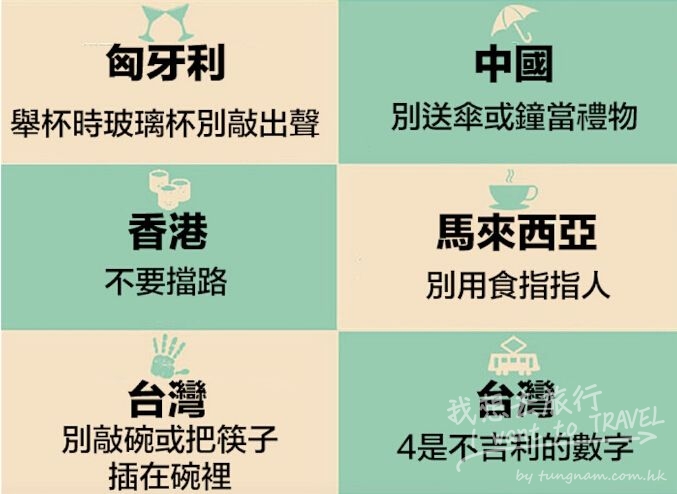 有時候去旅行最怕就係俾當地人白眼, 但原來每一個地方都可能有啲禁忌你係唔知嘅, 快啲分享俾啲friend 等佢去旅行時唔晒受人白眼!
