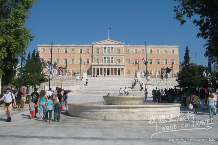 憲法廣場(SYNTAGMA SQUARE) ,位於雅典市中心,是雅典的中心地標,相當熱鬧,附近有很多戶外咖啡館,是當地受歡迎的市中心聚會地點。雅典市中心的景點也是以憲法廣場為中心成放射狀分佈,所以也建議遊客以此地作 為雅典行的開端。 廣場的南北有兩片綠地,種有遮蔭樹木,中心是一個大型噴泉,廣場經常舉行政治遊行。東側的阿馬利亞大街對面,就是議會大廈及其周圍的國家公園。每個小時在廣場與議會之間,在無名烈士墓前都會舉行總統衛兵換崗儀式。在星期日和官 方假日,大部分衛兵都參加換崗儀式,並有軍樂隊伴奏。 憲法廣場還是雅典多種公共交通形式的樞紐,地鐵在此設站,公共汽車和電車可通達城市各處。憲法廣場與機場之間開行機場專線和地鐵線泥路,雅典市亦有在廣場提供高速無線上網。 憲法廣場附近有許多名勝古積,例如雅典衛城、哈德良拱門、奧林匹亞宙斯神廟等。古老的教堂也散布在該區,有些可追溯到中世紀。