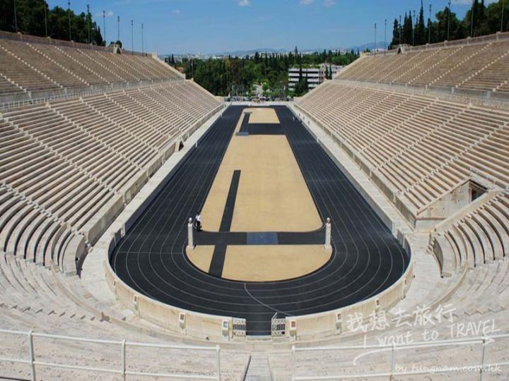 帕那辛納克體育場(KALLIMARMARO)座落於雅典市中心,是一座馬蹄型體育場,亦是世界上唯一一座全部運用大理石興建的大型體育場。它主要用來舉辦紀念雅典娜女神的泛雅典運動會,直到 1896 年為了舉行第一屆現 代奧林匹克運動會而進行重建。 體育場在雅典古運動場的廢墟上重建而成,是利用喬治.阿維羅夫捐贈的 100 萬德拉馬修建的。會場跑道全長為 333.33 米,大理石看臺共 47 排,可以容納 7 萬人。