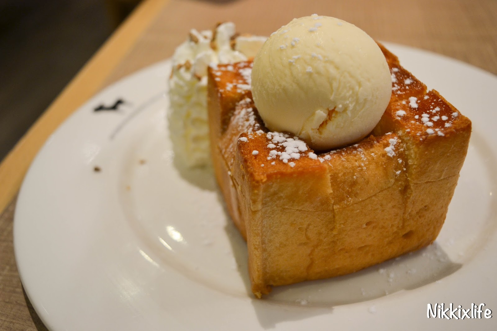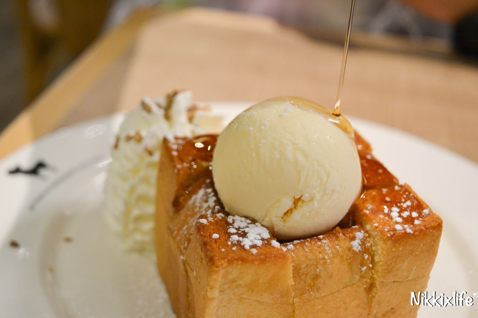 看似平凡到不得了的多士究竟有什麼出眾之處呢?在多士上倒蜜糖,把baby size的多士切開九小份。熱烘烘的麵包邊相當脆身,內層夠鬆軟。最特別的是它那香濃的牛油,牛油的味充滿著每一口的麵包中,超好吃的。又配合著蜜糖甜甜的味道,比香港的西多士更出色。那牛油的香味實在是太邪惡了!必讓你回味無窮!!