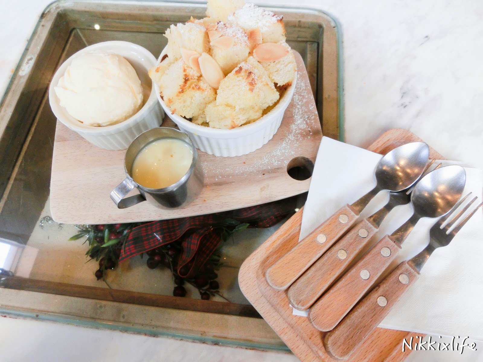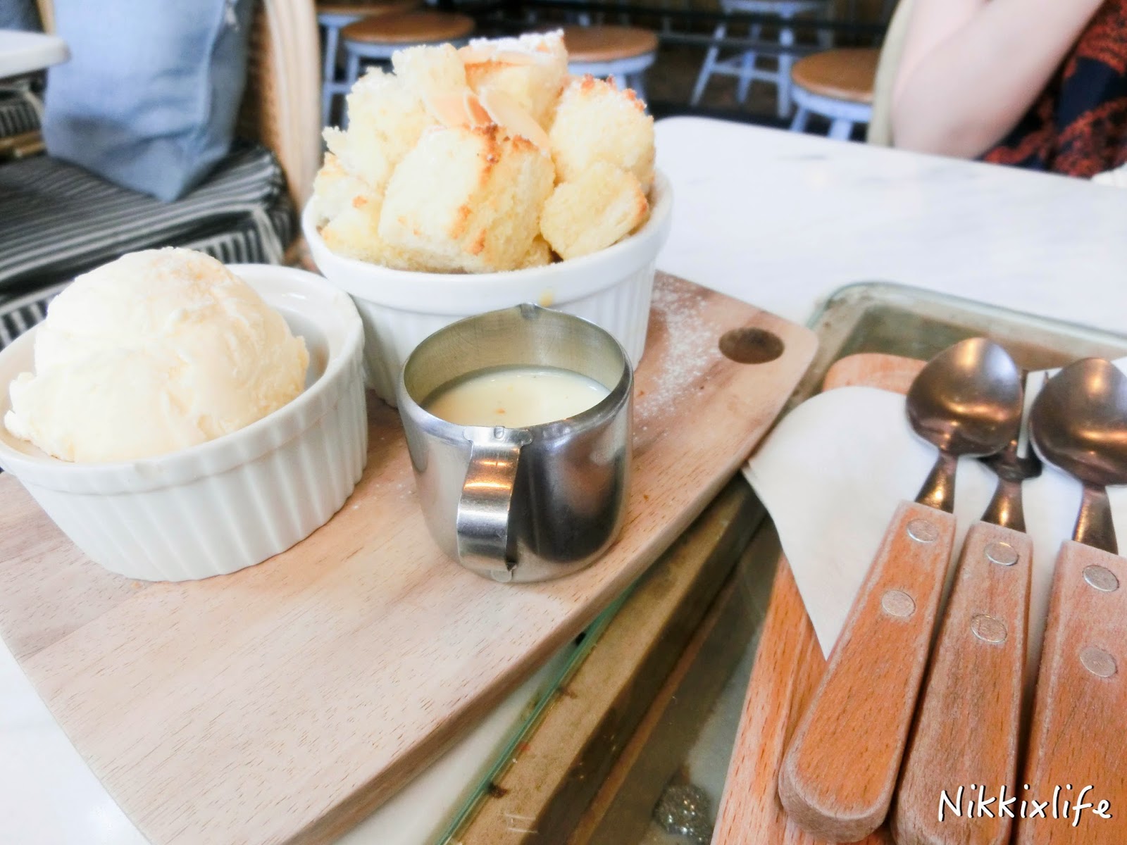 Bread Pudding登場了!麵包粒非常鬆脆,把旁邊的煉奶加入,更添味道。旁邊的雪糕跟微熱的麵包粒非常配搭,一冷一熱刺激味蕾。