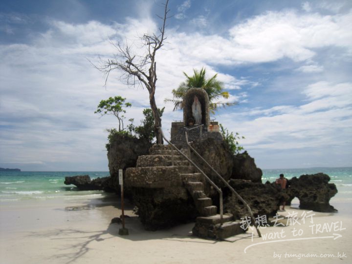 聖母礁岩是長灘島的地標,居民在上面供奉一尊聖母像,因此也稱為聖母岩礁, Willy’s Rock成為一個觀光客來到長灘島必拍照留念的景點。長灘島聖母礁岩是近4公里的細白沙灘上唯一聳立的岩石區域,當地人所搭建的聖母像也成為出海捕魚的漁民們祈禱豐收與平安的寄託,夕陽西下時聖母礁岩搭配海上無數的風帆更是搭配出美麗動人的畫面。