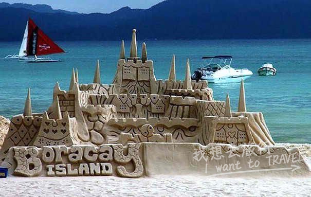 長灘島沙灘 沙堡,長灘島上的白色沙灘就像白色粉末一樣細緻, 由於沒有碎石珊瑚, 因此漫步在沙灘上是相當舒服的, 且走久也 不容易累, 長灘島上最適合蓋沙堡也是長灘島上最具代表性的景點!