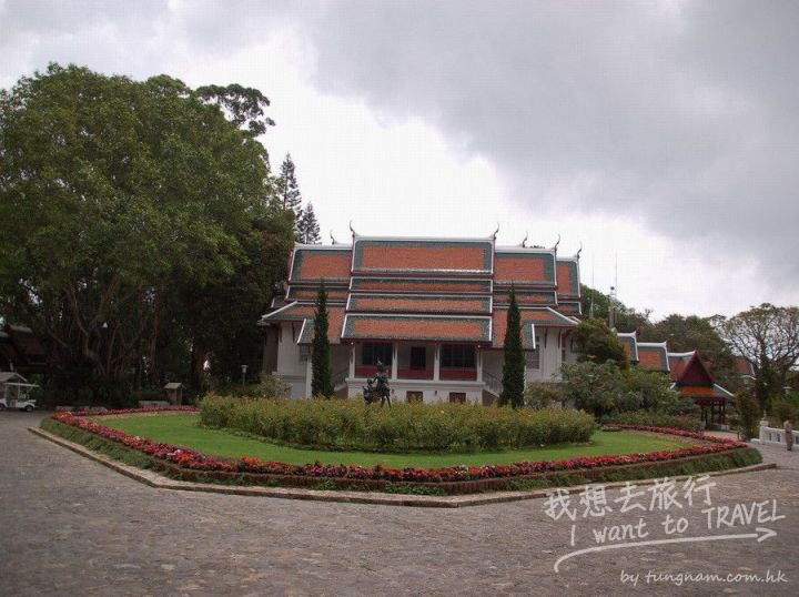 蒲屏皇宮,蒲屏皇宮為泰國皇室的避暑行宮,該行宮完工于1962年。每年1-3月王室人員來此居住。在皇室人員不住在這 里的時候,平日宮外花園向游人開放,游客可以參觀。整個王宮為泰式建築,花園內草木蔥鬱,花木秀麗,種 有玫瑰、鼠尾草和各種奇花異草。每年的12月到1月份的冬季,這里異常涼爽,百花盛開,景色美不勝收。王 宮白牆黃瓦,建築格調雅致,坐落在周圍的青山之中,自有一分清涼平和之美。