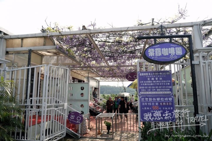 紫藤咖啡園(原咕咕鐘歐式花園) 前身為淡水三空泉之咕咕鐘歐式花園,在淡水區以花園西餐廳聞名2010年搬遷至淡水區屯山里,更名為紫藤咖啡園,園區內種植超過五百棵紫藤,園主精心規劃造型紫藤,例如:招牌紫藤隧道,獨創紫藤樹,紫藤牆…等等. 更在園區內種植數十種植物花卉,歡迎各位朋友來賞花. 紫藤咖啡園 每年紫藤花季開放,每年預計是3/15至4月底開放,其餘時間不對外開放參觀.紫藤難以照顧,其餘時需精心照顧,園主堅持每年限制開放時間,才能讓遊客欣賞到最漂亮的紫藤花.