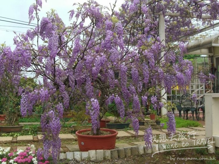 園內設立的咖啡館提供現煮特餐、美式套餐、專業咖啡,可以到此賞花、品嘗咖啡,園區內有不同的季節花卉,春季開放時間為三月中旬到五月中旬,正值紫藤花盛開時期,也是台灣知名的藤花景點之一。