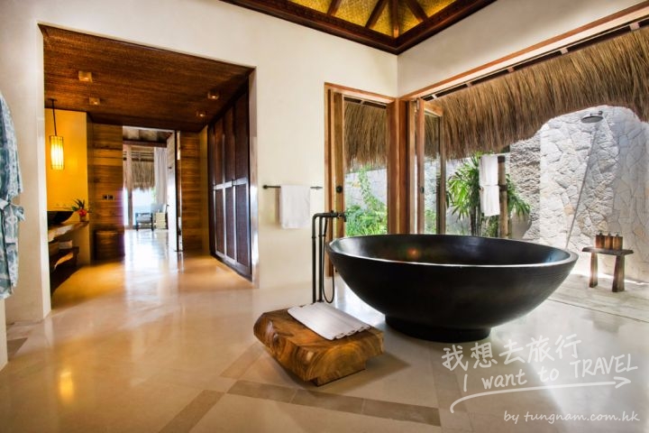 喺浴室正中間放置超巨大浴缸,外形好似一個大碗咁,兩個人一齊浸都好鬆動!將摺門推開就見到戶外淋浴間,增添戶外感亦好華麗!