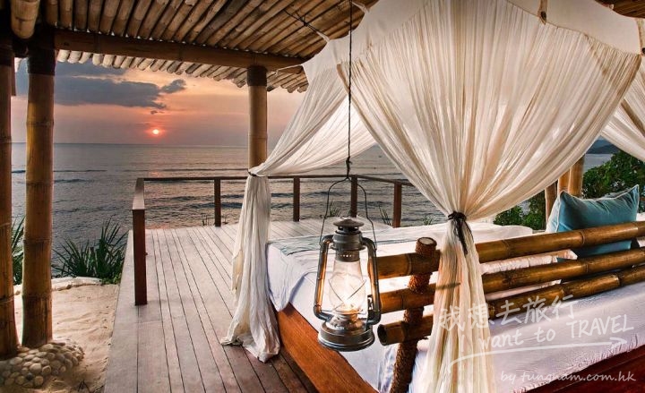 呢間 Marangga Villa 可盡情飽覽整個印尼松巴島對開大海景,再加上呢張附設公主簾嘅 king-size 觀景床,既有情調又可防蚊,正!