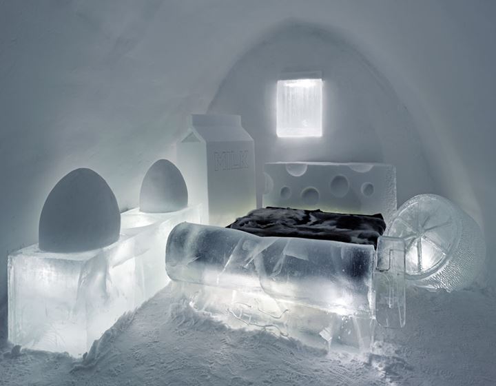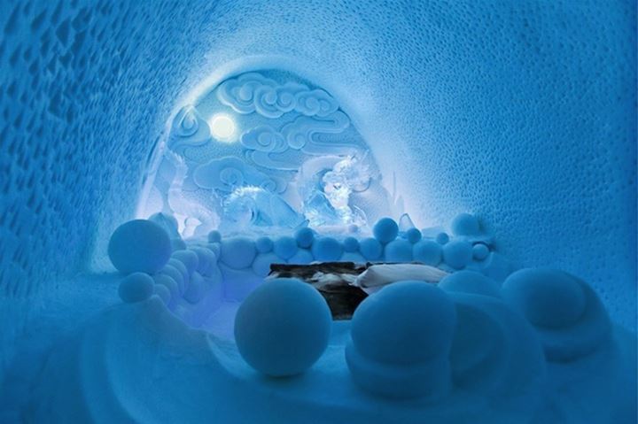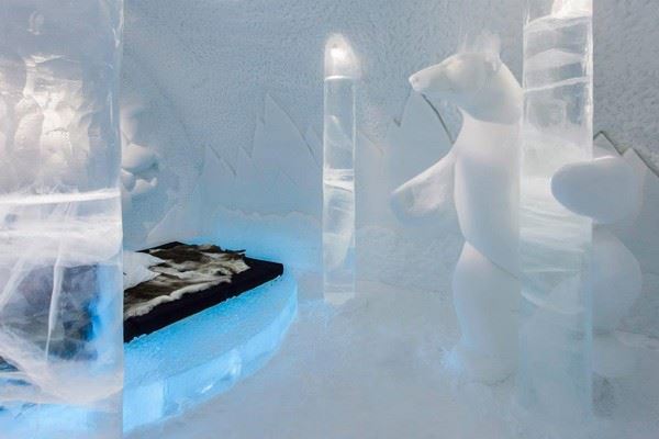 位於拉普蘭區(Lapland)的冰旅館每年都會邀請來自世界各地的雕刻家與設計師,打造不同的冰雕藝術房間。配合當地氣候,冰旅館約在12月開幕,營業到隔年4至5月。像是北極熊房、地鐵房、電影院房、納西瑟斯房…,都是今年嶄新創作。