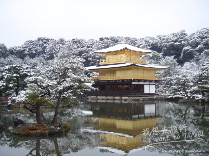 金閣寺,金閣寺是世界文化遺產。原為足利義滿將軍於公元1397年建造的山莊 , 後改為禪寺 , 正式名稱為 “鹿苑寺” 。1950年燬於大火 , 1955年重建。在鏡湖池中倒映出華麗身影的金閣是京都的代表性景觀。庭園被指定為國 家級特別史跡和特別名勝。因獨特的棚廈和南天床柱而聞名的茶室夕佳亭也值得一去。