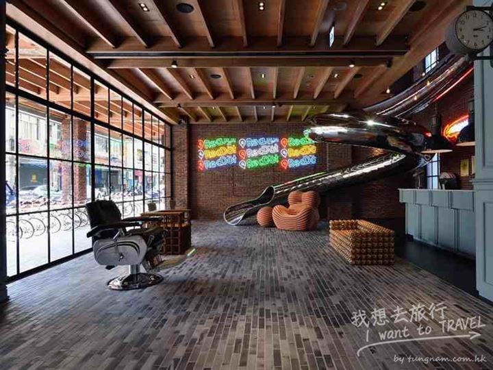 位於中區的紅點文旅,原是藏身在中華夜市內的銀河大飯店,身為設計師的老闆買下這間老舊酒店後,斥資三億元(約七千三百萬港元)將它徹底「改頭換面」,不但裝修、設施全部煥然一新,最令人着迷的是連接一、二樓之間的巨型滑梯,這條長二十七米、由不銹鋼板打造的滑梯,讓大人小朋友都玩得不亦樂乎。改裝後令酒店的入住率急升。