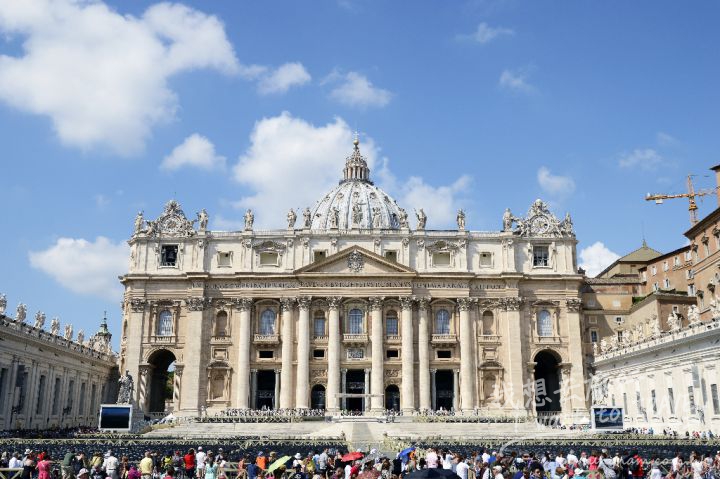 聖彼得大教堂(Basilica di S. Pietro) ,論面積、論宗教地位、論收藏的藝術品的質量,聖彼得大教堂在全羅馬,甚至全世界都排第一。這座長方形的教堂,整體呈現拉丁十字架的結構,造型是非常傳統而神聖,無論就天國或俗世的角度來看 ,都是最偉大的建築傑作。 西元4世紀時,君士坦丁大帝下令於據說是聖彼得埋葬的地點上,蓋一座紀念聖彼得的教堂。該教堂型式維持至15世紀因老舊而進行改建。 聖彼得教堂改建的過程長達176年,幾位在建築或藝術史下留下大師名號者都曾參與聖彼得大教堂的興建,例如拉斐爾、米蘭朗基羅、貝尼尼、波洛米尼等,可以說聖彼得大教堂集合了眾多建築天才的風格於一體,在宗教的神聖性外,它的藝 術性也是很有看頭的。每一位參與教堂工程的偉大建築師,都給予聖彼得教堂不朽的建築語言。