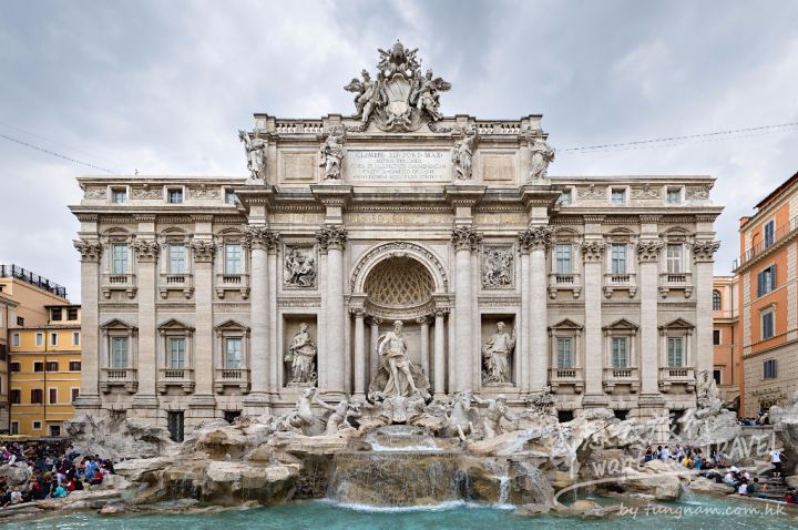 特萊維噴泉(TREVI FOUNTAIN)又稱少女噴泉,是因水源來自城外的少女泉水而得名,而人們往往更愛稱它為許願泉。它位於特萊維廣場,是羅馬最漂亮的雕刻藝術品之一,也是世界上最著名的噴泉之一,如今已有近300年的歷史了。噴泉以羅馬神話中的海神戰勝歸來為題材興建的,所雕刻的人物也栩栩如生。正中是海神站在兩匹馬拉的貝殼狀戰車上,兩個年青的戰士各自奮力拉著一匹站馬,其中一個還使勁吹著號角。好像是海神的戰車正在從海中一躍而出,威嚴而大氣。整個噴泉的水量非常大,雕像和清澈的泉水相交輝映。特萊維噴泉因影片《甜蜜生活》而吸引著世界各地的遊客來此許願。可模仿影片中的方式,站在噴泉邊,拿出一枚硬幣,背對泉池,用左手繞過右肩往池里扔入一枚硬幣,同時許下自己的心願。