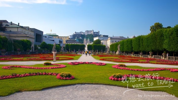 米拉貝爾宮殿和花園(Mirabell Palace and Gardens)始建於1606年,位於薩爾茨堡的薩爾茨河北岸,是當時的大主教沃爾夫迪特里希為其情人莎樂美而建造,在迪特里希去世後由後繼者更名為米拉貝爾宮殿。如今這裡成為了薩爾茨堡的市政廳。米拉貝拉花園則是最受遊人喜愛的拍照地。這個集聚了羅馬雕塑、噴泉、花園、迷宮的巴洛克式花園,曾是知名電影《音樂之聲》中,女主角瑪麗亞帶著孩子們歡唱“Do-Re-Mi”的地方。由於這里之前曾遇到過大火,因此唯一留下來的是通向花園的大理石樓梯和大理石大廳。大理石大廳今天已經是世界上最美麗的婚禮大廳之一,這裡幾乎每天都有新人前來註冊結婚。廳內到處可見可愛的小天使雕塑,牆上則是各路希臘神祇的雕像。小天使姿態各異,憨態可掬,活潑可愛,彷彿坐在雲端嬉戲。除此之外,大理石大廳主要用於會議、紀念活動和音樂會。每年7月中旬到8月底是著名的薩爾茨堡藝術節的舉辦時間,此時古典樂界的世界最頂級團體和藝術家都會來到薩爾茨堡為觀眾們帶來精彩的演出。米拉貝爾花園其實就是一座小小的街心花園,景色主要靠花草的造型和色彩來襯托,因此不建議冬天來這裡游玩。花園中央是一座大型噴泉,四周有許多希臘神話中的人物雕像。花園的後方走上去就是侏儒花園,裡面放著幾個小矮人,造型比較誇張,據說原型是主教大人和情婦所生的孩子們。花園裡還有2座獨角獸雕塑,處處充滿了浪漫與童話色彩。5-10月天氣好的時候來這裡游玩,可以坐在花園的長椅上曬曬太陽,看著紫藤瀑布流瀉而下,掩映著粉紅色的牆和白色的窗櫺,優雅而恬靜,從花園可眺望遠處的薩爾茨堡城堡。