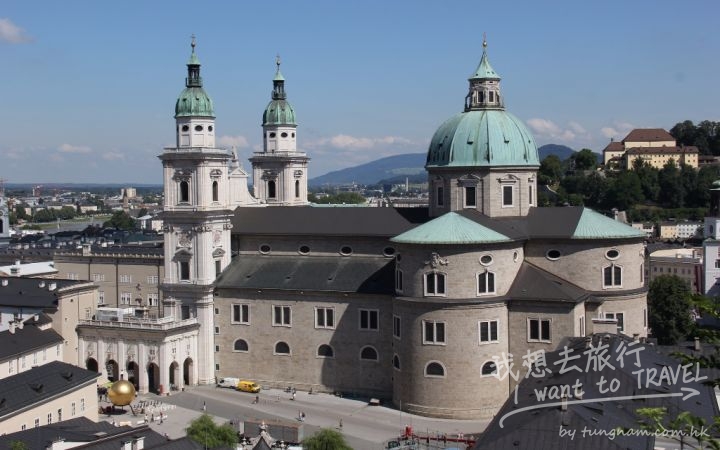 薩爾茨堡大教堂 (Salzburg Cathedral)是一座巴洛克建築,現在的大教堂依舊保持著當時的外形,內部構造亦未遭損毀,可以說這處古蹟是保存得較完好的。雄偉的立面和巨大的圓形屋頂體現了阿爾卑斯山一側早期巴洛克風格雄偉的特徵。它也是莫扎特洗禮的地方。自它落成之日起,它就與教廷王侯的一切緊密聯繫在一起。從教堂在大火中被燒毀,到被重建和擴建,這一系列過程中無一不見證了薩爾茨堡教主的至高無上的權力與獨立性。