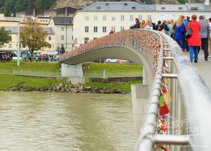 巴克小橋(Makartsteg)位於鹽河上面,連接城鎮和廣場的橋樑,也是薩爾茨堡的“情人橋”。橋樑不能通車,所以可以漫步在橋上。橋上掛滿了各種各樣的同心鎖,戀人們將鎖鎖在橋上之後,把鑰匙丟進河裡,寓意著能夠天長地久不分開。橋面上也是攝影的好地方,視野非常開闊,能拍到教堂、要塞、老城等,橋頭便是卡拉揚的故居,時間充足也可以前往參觀。