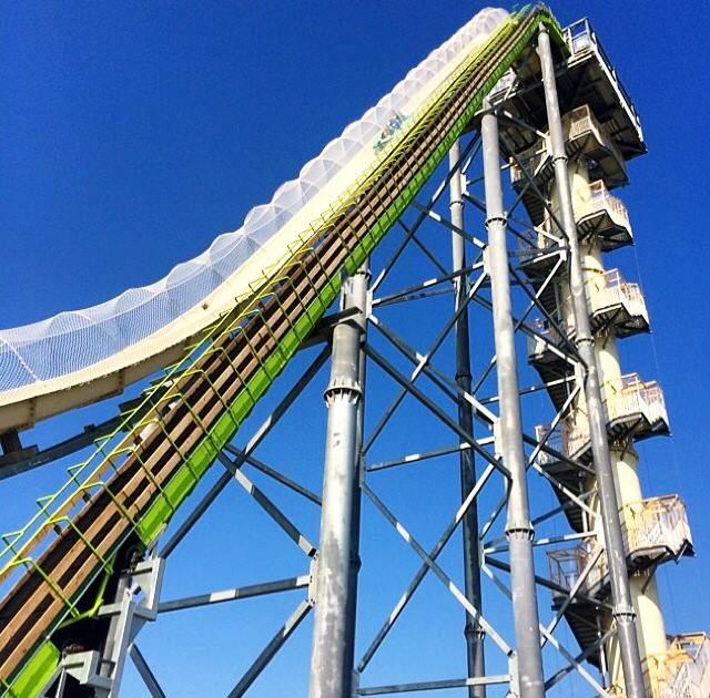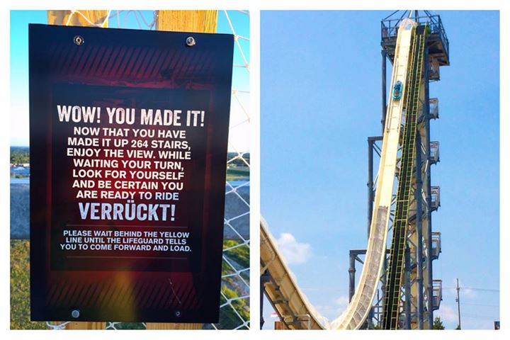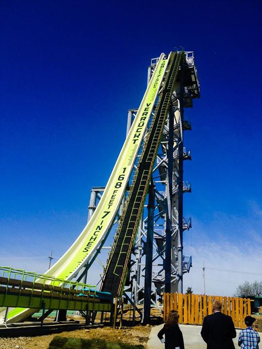 世界上最高的滑水道最近在堪薩斯城的 Schlitterbahn水上樂園。滑水梯命名為Verruckt(德文為“瘋狂”)在168英尺的高空(大約17層),要你行完264級樓梯後先可以挑機,想話唔敢玩都唔得啦。看看下面的比較圖,你就知道是在甚麼高度滑落下.再睇下現場拍攝的視頻.有勇氣就去挑戰吧(願主保佑你吧)!!