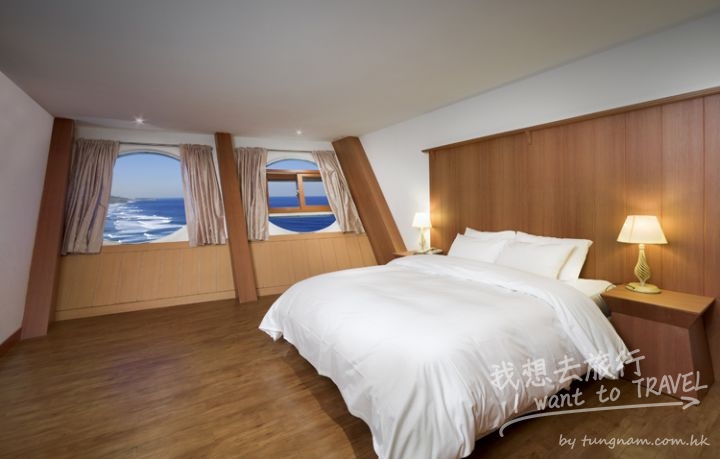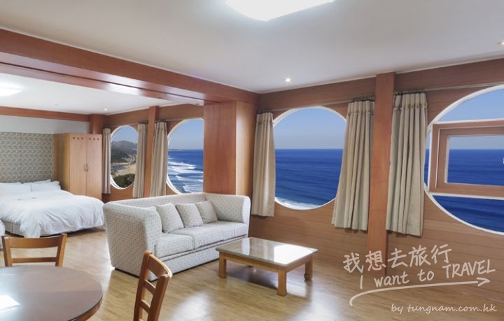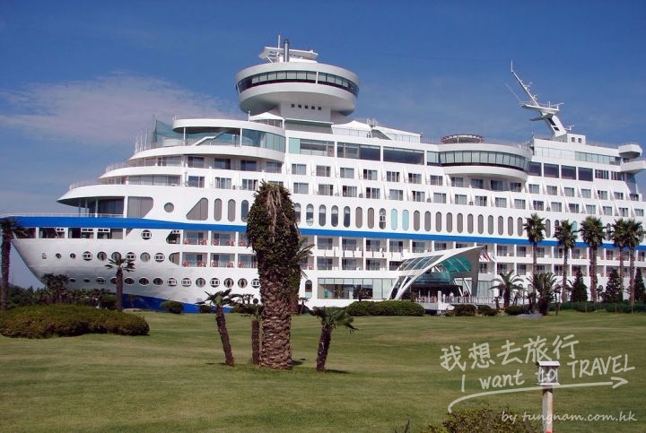想要體驗一回郵輪之旅,感受面朝大海的自由暢快,但又擔心自己會因經受不起風浪,而慘被暈船佔據整個旅程嗎?那麼各位航海迷不妨考慮一下位於韓國江陵市的Sun Cruise Hotel。由造船廠建造而成,這艘高高“停靠”在山頂位置的巨無霸,外形十足皇家加勒比遊輪,是離海岸線最近的酒店,除了按照遊輪標準來打造的娛樂休閒區和客房,並鋪設地暖之外,還在靠山的一邊佈置了大片花園。雖然不能下水,但長長延伸出懸崖邊的露天甲板仍是一覽無敵海景和感受驚險的絕佳觀景區域,再加上全船裝置的航海音效系統,撲面而來的海風和海腥味,還有海鷗和海浪的聲音確實讓人有種身處大海的感覺。