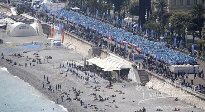 ~抵達尼斯海岸時,光是喊口號就喊了兩個小時,還有警察維持秩序~