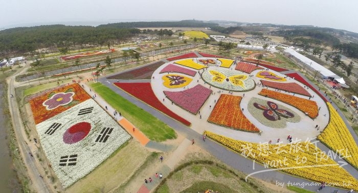 今年的「泰安鬱金香節」以「鬱金香! 乘載著世界!」為主題,搭配各國主要地標,營造出世界村的感覺。慶典以韓國的形象與傳統打底,可以看到韓國國寶1號的南大門等裝飾。另外,法國的巴黎鐵塔、荷蘭的風車、埃及的金字塔,則為現場增添了許多異國風情。在花朵的部分,本次慶典採用了許多水仙花跟百合花,成為鬱金香節的最佳配角。期待春天來自國內外的旅客一同共襄盛舉。